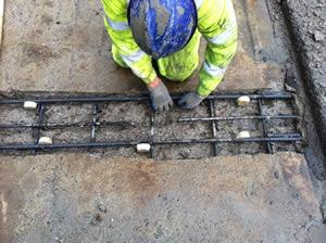 the side or beneath the exposed rebar as close as practical to the surrounding concrete making sure